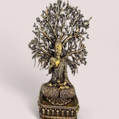 Brass Buddha Statue Sitting Under The Kalpavriksha Tree